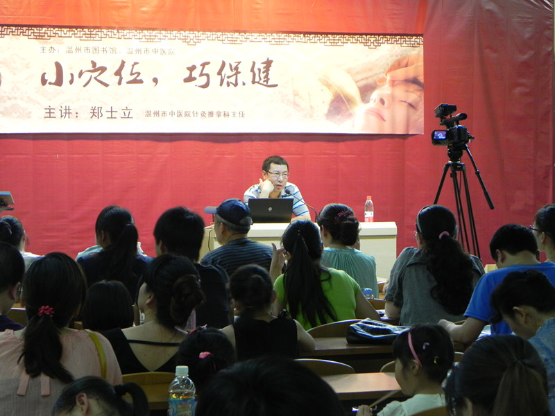小穴位,巧保健——2012年第六期健康大讲坛开讲6月30日下午,由我院针灸推拿科主任、副主任中医师郑士立主讲的第六期健康大讲坛在温州市图书馆一楼多功能厅举行,近200名市民朋友参加了此次讲座。 在开讲之前,先由我院郑雪君护士带领大家做耳穴操,与市民…查看详情+