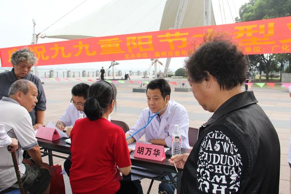 我院老年病学科专家迎重阳节义诊9月27日上午,我院老年病学科群专家胡万华主任、陈炳主任在温州市老年病学会举办的迎重阳节大型义诊活动现场,为300余位老年人免费测量血糖、骨密度,并接受群众现场医学咨询,受到了广大市民的好评。查看详情+