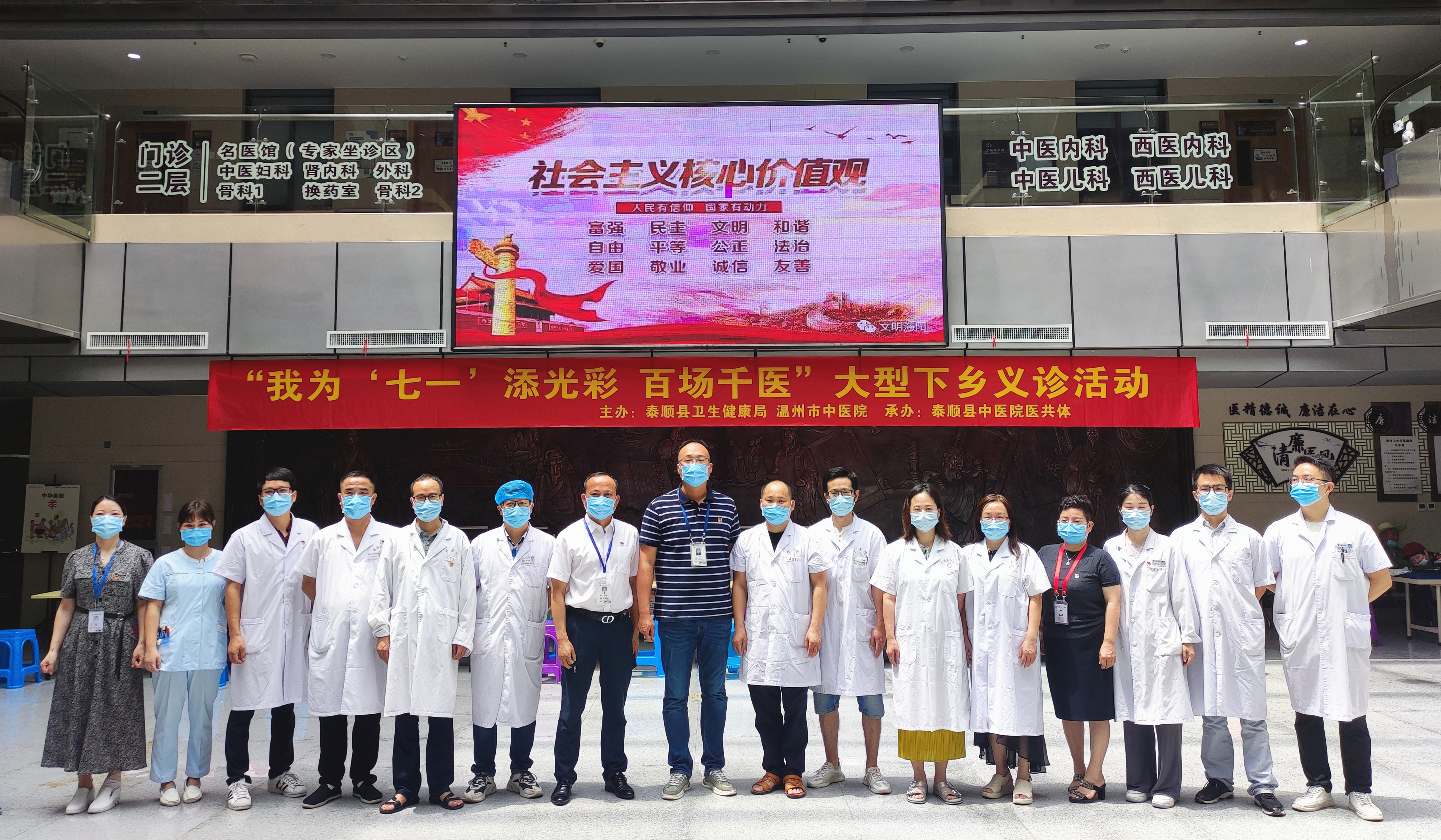 献礼百年 · 义诊暖民心丨九州娱乐城(中国)官方网站 开展“我为‘七一’添光彩 百场千医”大型义诊活动进一步推动党史学习教育“我为群众办实事”走深走实,以实际行动献礼建党100周年,6月27日,九州娱乐城(中国)官方网站 联合泰顺县中九州娱乐城 开展“我为‘七一’添光彩 百场千医”大型义诊活动。 为满足广大泰顺人民和患者的就医及…查看详情+