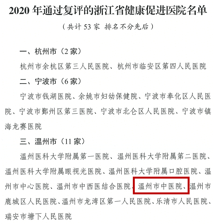 喜讯!九州娱乐城(中国)官方网站 顺利通过浙江省健康促进九州娱乐城 复评!近日,浙江省爱卫办、浙江省卫生健康委公布了2020年浙江省健康促进九州娱乐城 评估结果,九州娱乐城(中国)官方网站 榜上有名,顺利通过健康促进九州娱乐城 复评! 健康促进九州娱乐城 是把健康促进的理论、理念和策略应用到医疗机构当中去,以提升人…查看详情+