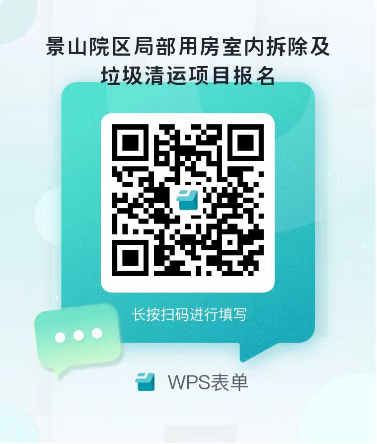 景山院区局部用房室内拆除及垃圾清运项目询价公告各投标单位:根据景山院区局部用房室内拆除及垃圾清运需要,欢迎符合条件的供应商单位参加询价,具体要求如下。报名截至时间:2025年1月10日上午9点30分,同时请各有意向的投标单位扫码进行线上报名,未报名者视为无投…查看详情+