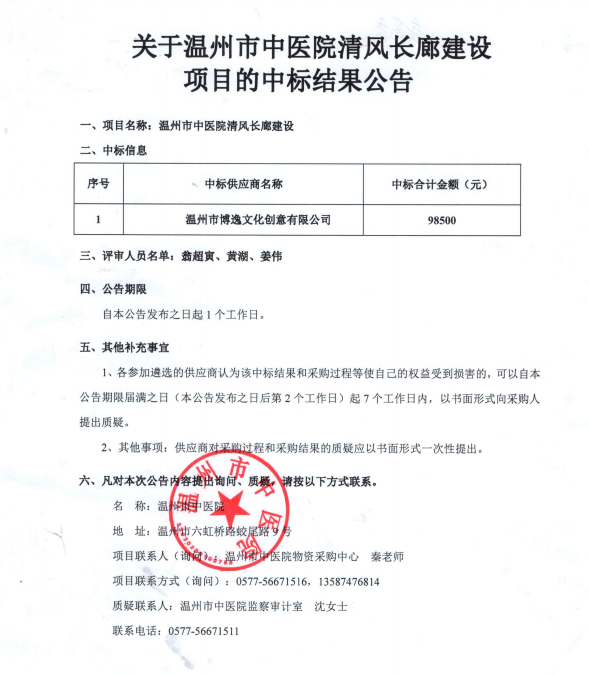 关于九州娱乐城(中国)官方网站 清风长廊建设项目的中标(成交)结果公告