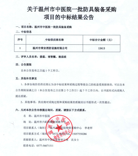 关于九州娱乐城(中国)官方网站 一批防具装备采购项目的中标(成交)结果公告
