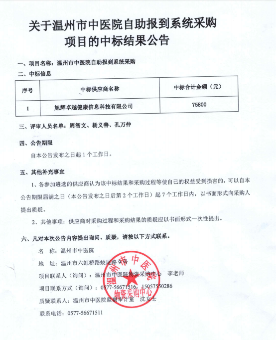 关于九州娱乐城(中国)官方网站 自助报到系统项目的中标(成交)结果公告