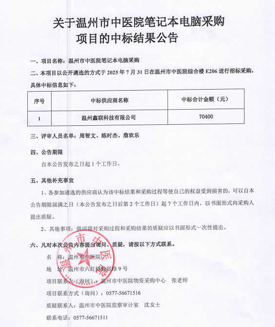 关于九州娱乐城(中国)官方网站 笔记本电脑采购项目的中标(成交)结果公告