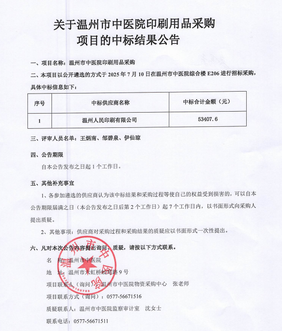 关于九州娱乐城(中国)官方网站 印刷用品采购项目的中标(成交)结果公告