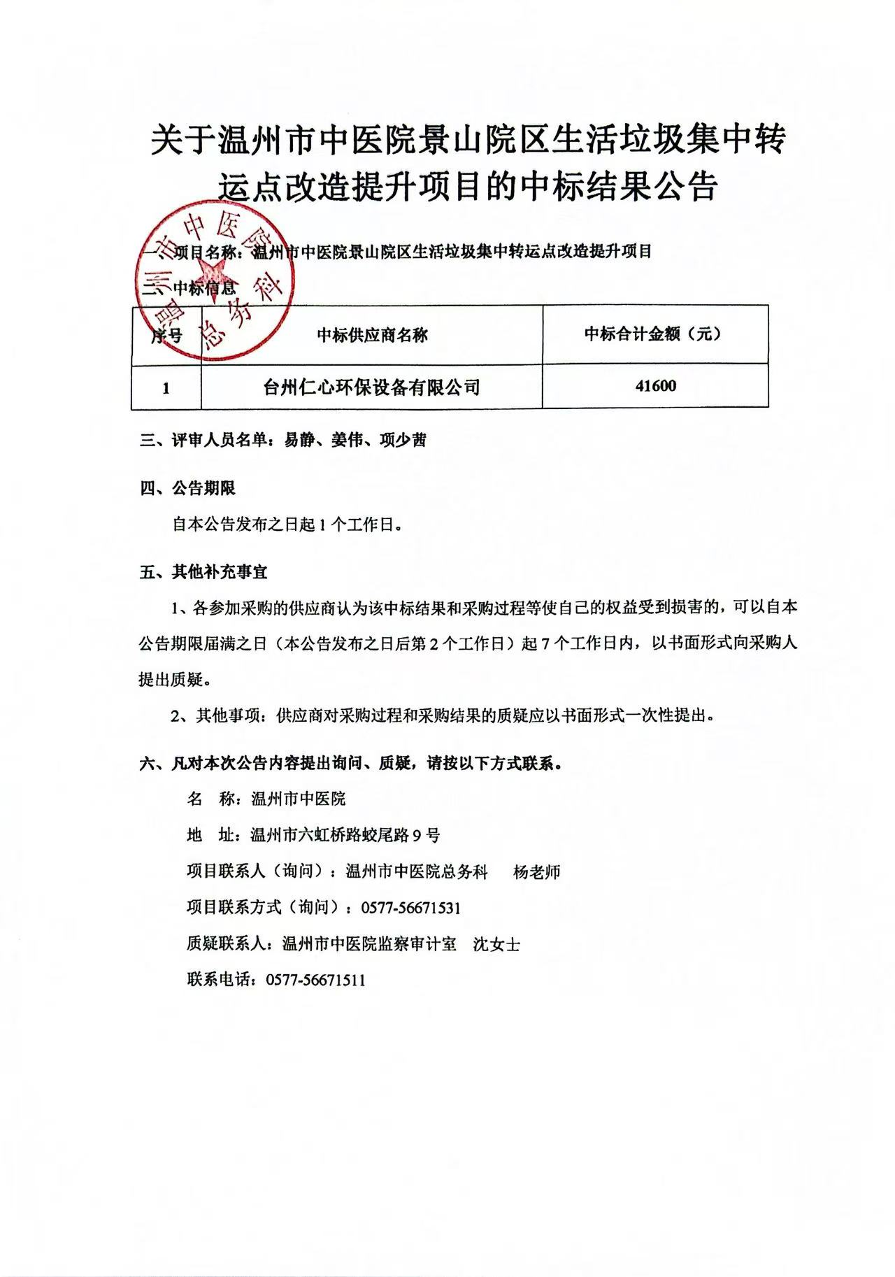 关于九州娱乐城(中国)官方网站 景山院区生活垃圾集中转运点改造提升项目的中标结果公告
