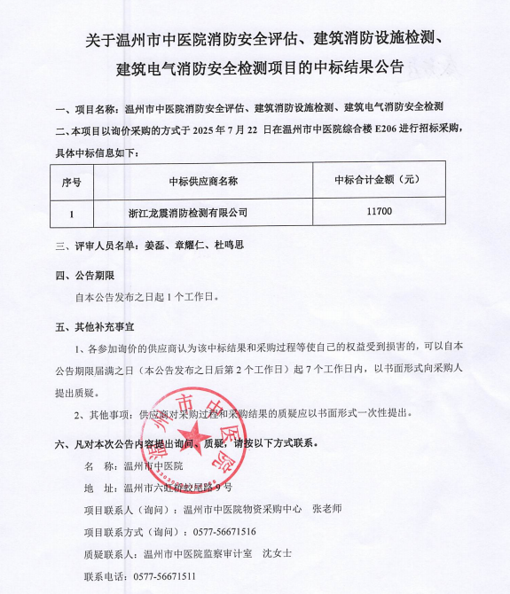 关于九州娱乐城(中国)官方网站 消防安全评估、建筑消防设施检测、建筑电气消防安全检测项目的中标(成交)结果公告