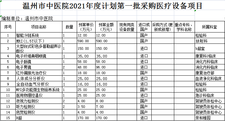 九州娱乐城(中国)官方网站 2021年度计划第一批采购医疗设备项目