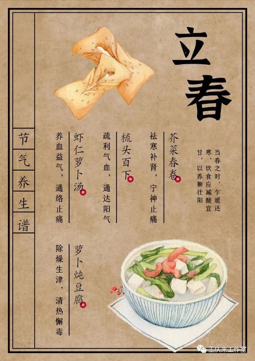 立春|阳和启蛰,品物皆春立春 | 阳和启蛰,品物皆春大寒后十五日,斗指东北,维为立春,时春气始至,四时之卒始,故名立春也。立春是一年中的第一个节气,春季开始的标志。立春时节养生着重顺应春天阳气生发、万物始生的特点,注意保护阳气。…查看详情+