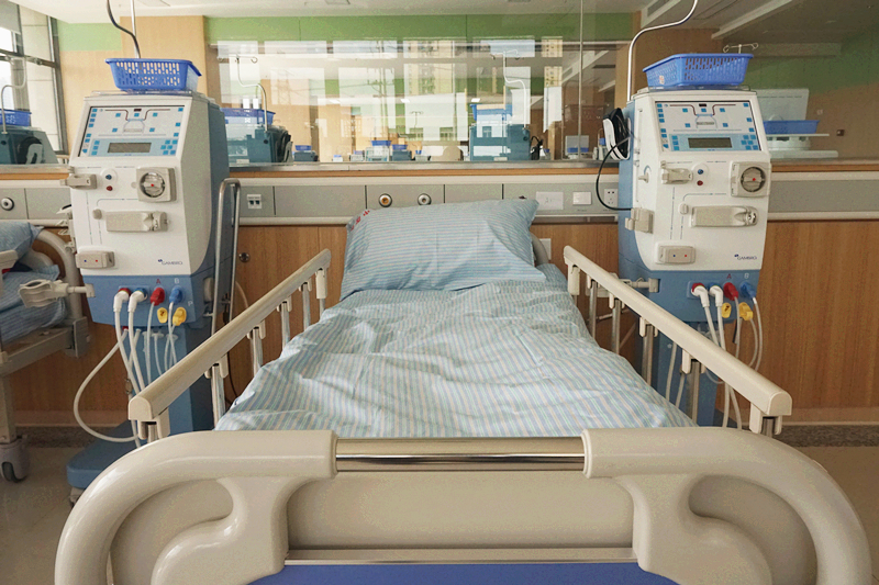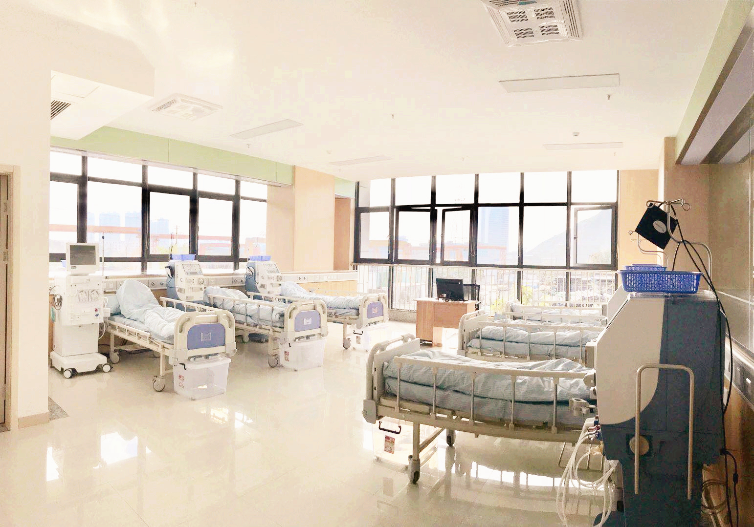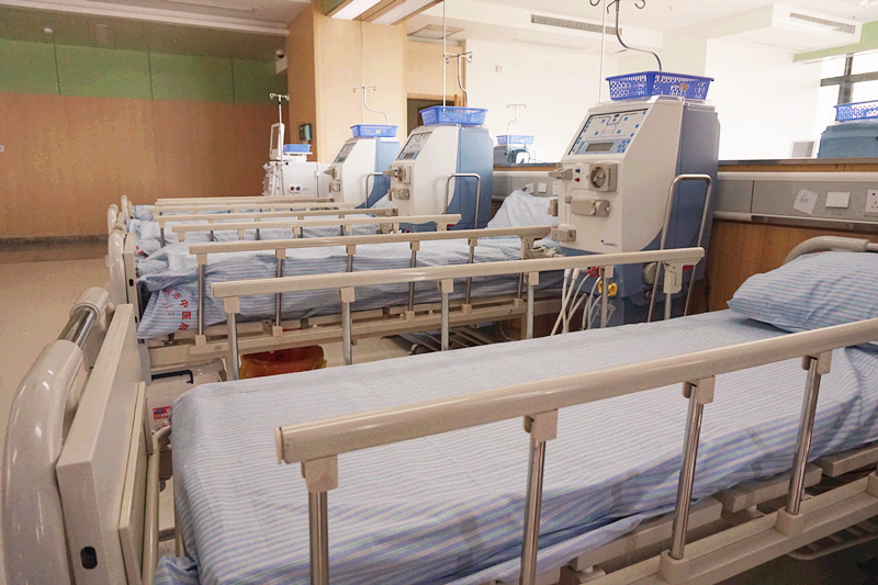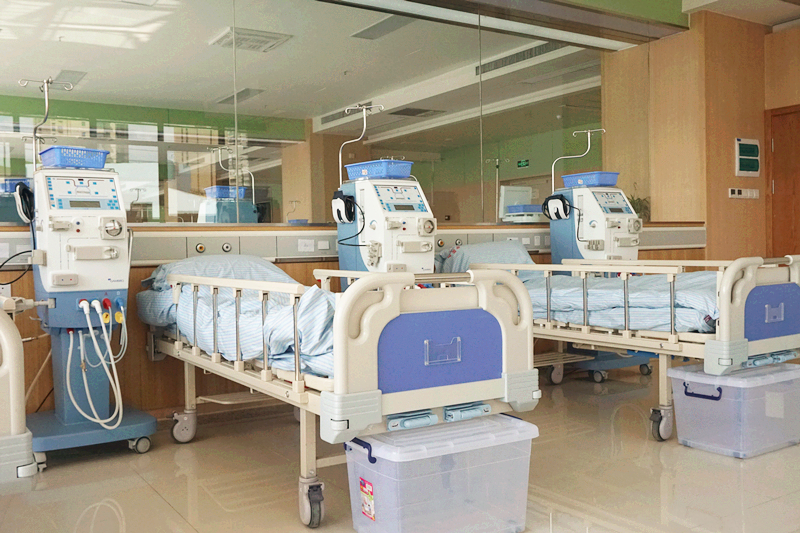 中九州娱乐城 六虹桥血液净化科现拥有德国贝朗、美国百特血液透析机共71台,年透析例次可达到4万余。拥有德国劳饵的双级反渗水处理机,透析用水达到国际超纯化透析标准,最大限度地减少了透析的副作用,能有效改善维持性血透患者的微炎症状态,从而充分保障患者透析品质,提高患者的生命质量及长期生存率。同时,本科透析治疗室安装等离子空气消毒机,可对空气质量进行实时消毒。并配备臭氧床单位消毒机,减少九州娱乐城 交叉感染的发生。