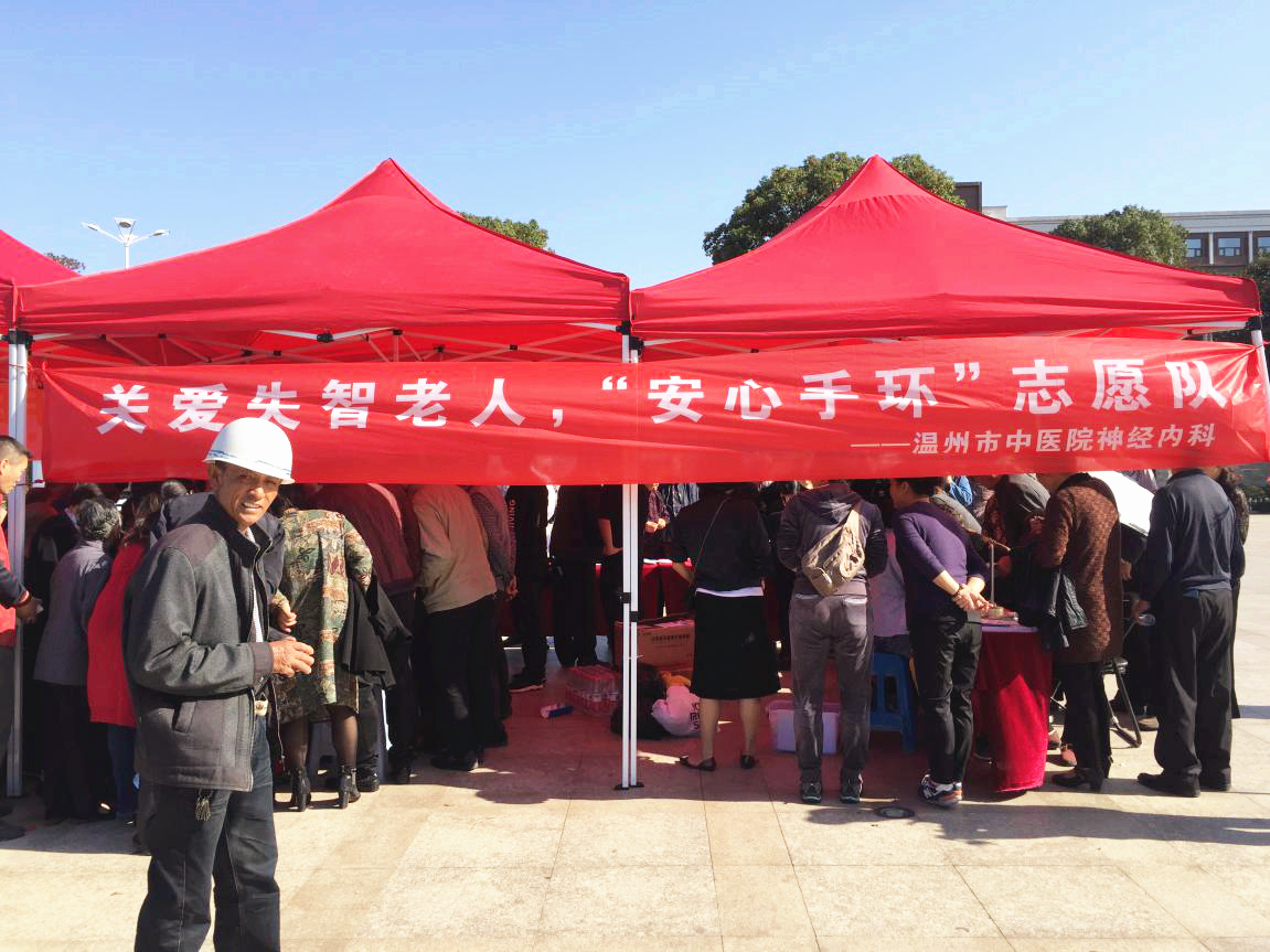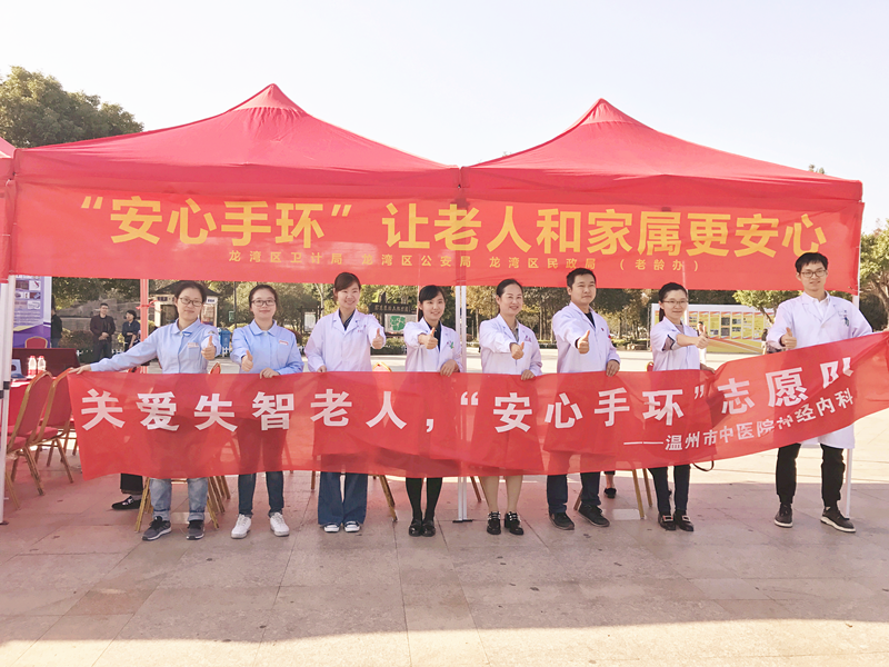 为更好的关爱失智老人,弘扬尊老爱老助老的优良传统,11月9日下午,我院神经内科联合龙湾区卫计局、公安局、民政局(老龄办)在龙湾区河泥荡文化公园举办“安心手环”冬日情暖龙湾的活动。