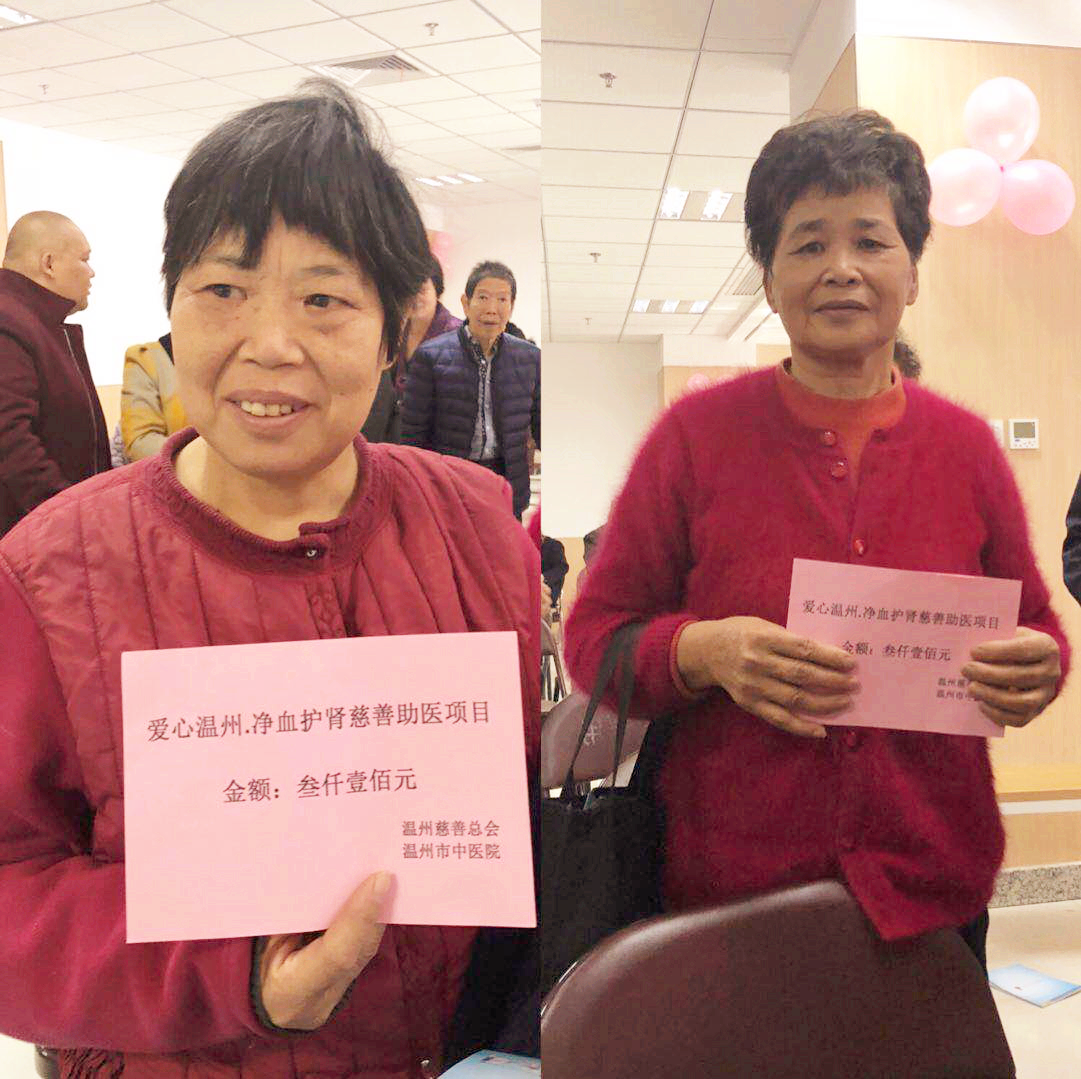 讲座后进行了爱心温州·慈善助医净血护肾的颁发仪式,这个项目是温州市慈善总会在我院设定的助医救助项目。根据病情、贫困情况,经过慈善总会严格审核,每年都会对符合救助条件的血液透析患者,给予一定的救助基金。