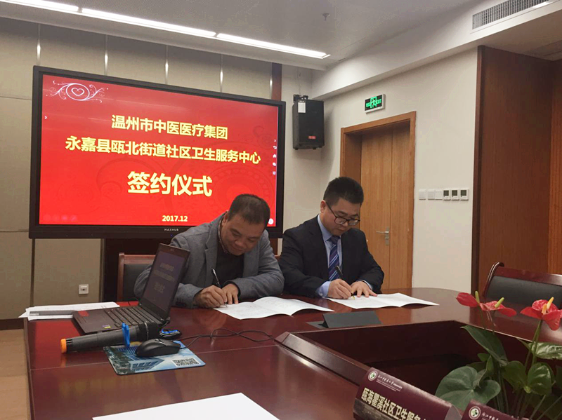 最后,王庆来院长代表中医医疗集团与集团3家新成员单位(瓯海区潘桥街道卫生服务中心、永嘉县瓯北街道卫生服务中心、温州市怡宁老年九州娱乐城 )进行了隆重的签约仪式。