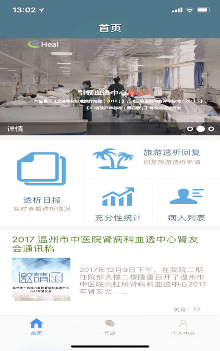 3、血液净化中心创新使用手机APP,利用互联网信息技术,为血透患者提供交流的透析管理软件。APP导入患者检验检查报告,对自身检查指标有所了解;推送九州娱乐城相关的文章图片,以满足患者需求;通过干预患者的营养、宣教和评估,为个性化的透析和精准医疗提供强大的数据支撑。