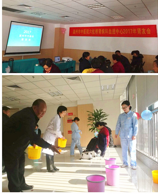 3、定期与我院肾内科医护同事共同开展肾友健康教育联谊,讲解相关肾病、血透、腹透等疾病相关知识,解答患者所关心的问题,达到集体宣教的目的。宣教同时穿插有奖问答的互动方式提高患者的积极性并引起患者对所宣教知识的重视。活动不仅获得了患者及家属的一致好评,同时加强了医护工作者与患者之间的友好交流。
