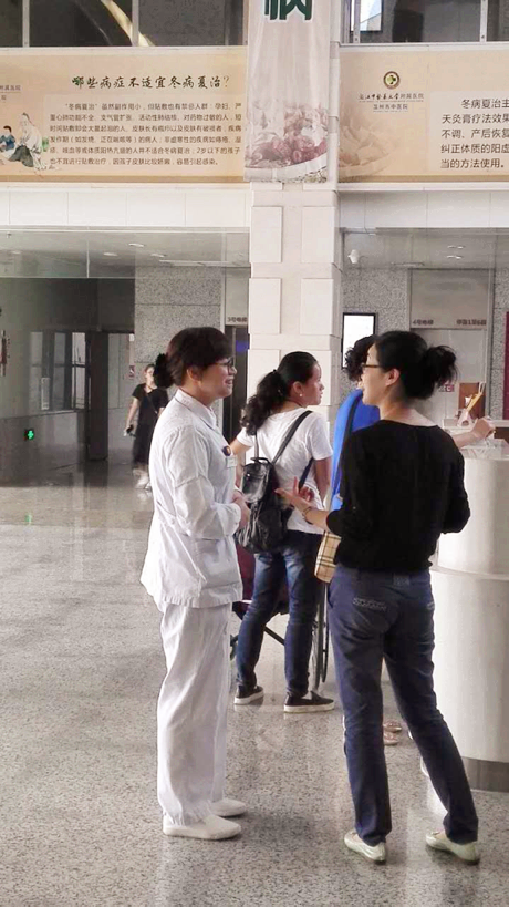 每周至少一次的诊前患教和带领患者做中医保健操(曾被温州都市报报道过),让门诊病人树立健康意识,养成良好的健康行为和科学的生活方式。播放专题教育片,由门诊护士亲自进行有关专题知识的讲课。在主动传播保健知识时,减少了患者候诊时的急切心理,也使门诊患者和家属的健康意识得到提高,通过健康教育活动,拉近了门诊医护人员和患者的距离,得到病人的一致好评。