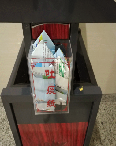 1、吐痰纸——门诊是公共场所,患者着急想吐痰却又找不到合适的地方。我院通过征集“金点子”,经过数次讨论和试验后,投放了自制吐痰纸在垃圾桶旁,方便患者在需要时解决吐痰的尴尬。
