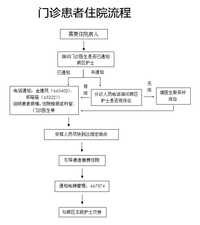 2、门诊护送入住院部——当门诊有需要住院的患者时,分诊护士会经由搀扶,轮椅,推车等一路护送患者去住院部,将患者由门诊直接交到住院部护士的手中,做好交接。真正做到方便患者一条龙。