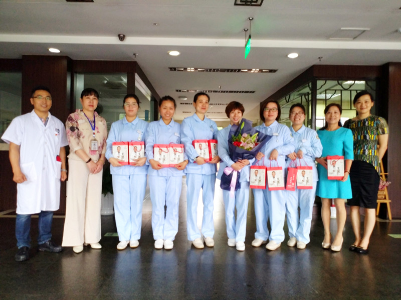火红的五月,阳光明媚,繁花似锦。在这春与夏交汇的季节,我院全体护士迎来了第106个国际护士节。5月12日上午,领导班子王庆来院长、黄爱林副书记、麻瑞龙副院长、朱文宗副院长、缪心军副院长前往六虹桥院区、景山院区、水心院区及大士门院区,为全体护士们送上"一杯(辈)子"的祝福,表达了领导班子对全体护士最真诚的祝福与关怀,让我们的守护天使们在5.12这样特殊的日子里感受到温暖与爱。 (慰问六虹桥院区护士)