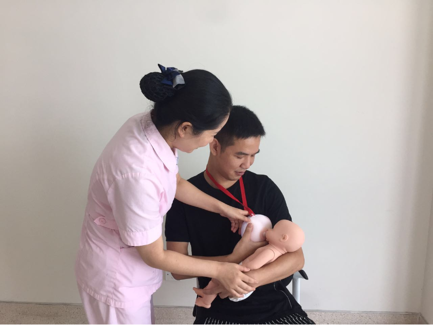 4、在医师指导下,准爸爸体验母乳喂养的辛苦;