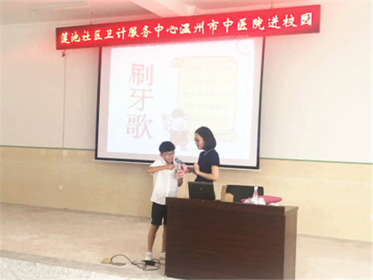 为普及正确的口腔保健知识,9月22日下午,我院保健科联合莲池社区卫生服务中心在石坦巷小学开展爱牙日健康教育讲座,倡导口腔健康,身体健康的观念。讲座中,我院口腔科马思环医生从“认识我们的牙齿、牙齿的作用、蛀牙的形成、龋齿的危害、日常爱牙好习惯、如何正确的刷牙、窝沟封闭的好处”等方面给同学们作了详细的讲解,并对所讲的口腔健康知识进行了现场测试。同学们全神贯注听讲,现场气氛十分活跃。