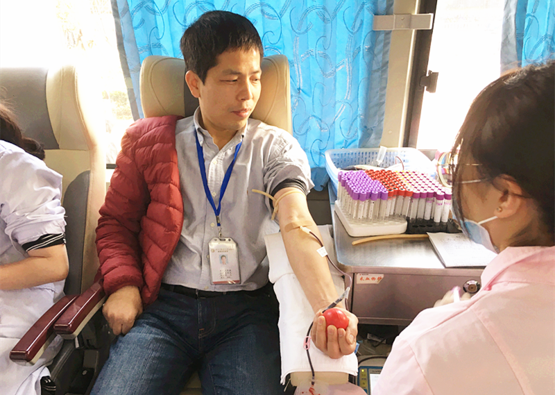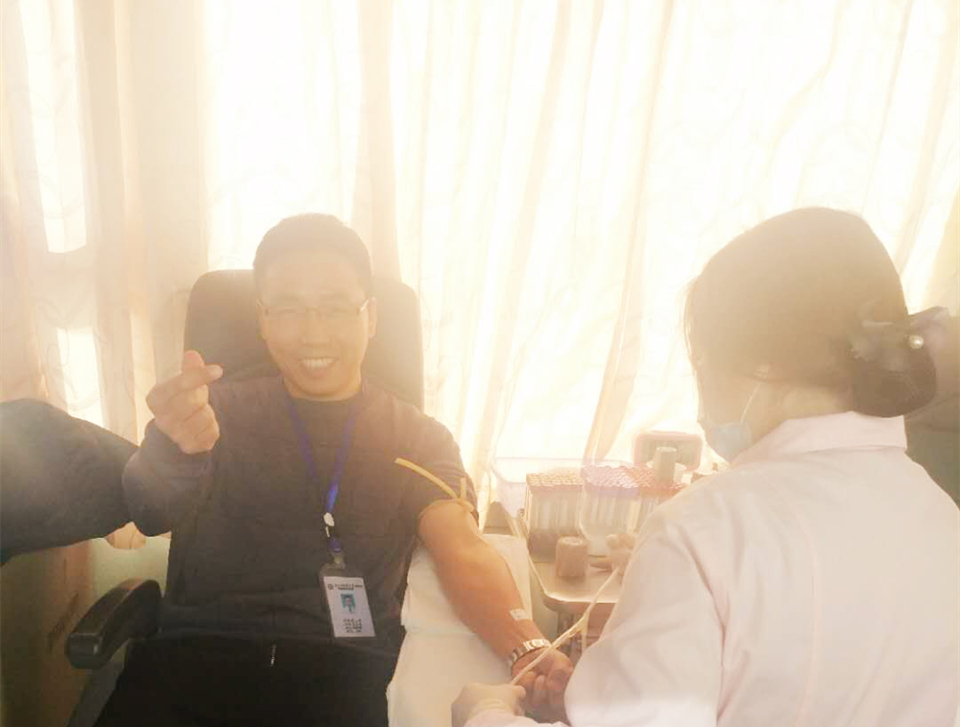 与此同时,献血车上又是一片其乐融融的景象。大家或是面不改色地望着鲜血汩汩流出,一派从容淡定;或是与周围的同事谈笑风生,颇有关二爷刮骨疗毒的豪迈;亦或是笑容灿烂,似是满足于自己能贡献一份鲜血,一份希望。当然,也有面露紧张,却依旧毅然决然地伸出手臂,这就像一场博弈,一边是几百毫升的鲜血,一边是重愈泰山的生命,选择自是不言而喻。这样的场景同样也发生在我院景山院区,大士门院区。值得一提的是,今年献血车首次驶入景山院区,无偿献血,享生命感动。