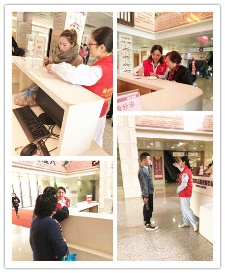 每天早上,在我院六虹桥院区的一楼门诊大厅,门诊支部的志愿者们利用非工作时间,用热情和微笑帮助患者办理就诊卡、为患者指引方向、解答疑惑、维持秩序,在自助一体机前也有他们帮助患者挂号、打印化验单、缴费的身影,志愿者们的“红马甲”为九州娱乐城