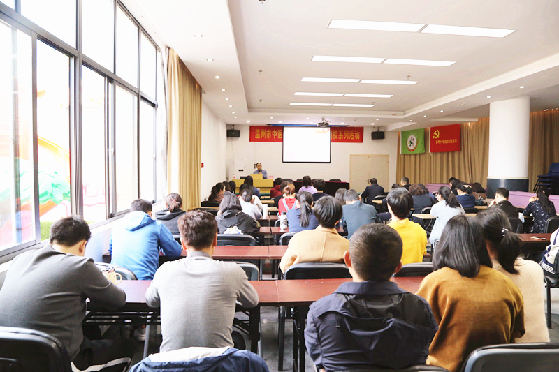 此次,我院团委组织针推科宋丰军主任团队走进温州市青少年活动中心,为在校教职工讲解“小穴位,巧养生”的科学养生之道。宋主任将“理性养生”的观点渗透到整个讲座,并一边比划一边讲解各个养生穴位,让现场教职工受益匪浅。
