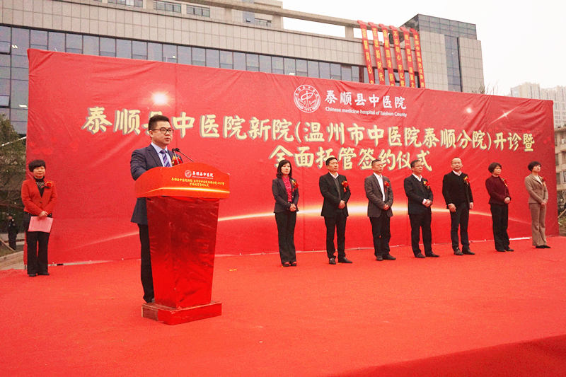 2018年3月2日上午,泰顺县中九州娱乐城 新院(九州娱乐城(中国)官方网站 泰顺分院)开诊暨全面托管签约仪式在泰顺县中九州娱乐城 新院隆重举行。市卫计委主任程锦国、泰顺县人民政府县长黄阳栩及泰顺县四套班子有关领导、市卫计委相关处室负责人、我院王庆来院长及相关领导、科室负责人等参加了仪式,仪式由泰顺县副县长郭素琴主持。