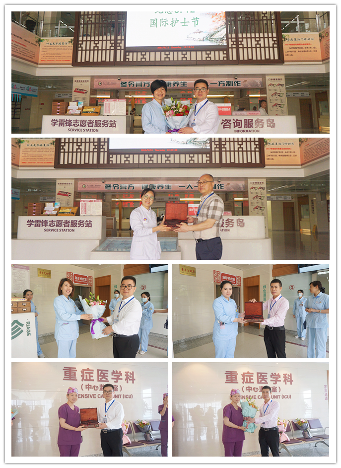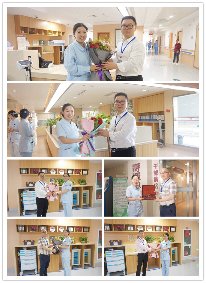 在这阳光明媚的5月,我们全体护士迎来了第107个国际护士节。5月10日,院领导班子王庆来院长、麻瑞龙副院长、缪心军副院长、陈炳院长助理、孙云院长助理、护理部卢韵琦主任、王慧静副主任、金红露副主任,工会夏平易副主席等前往六虹桥院区、景山院区、水心院区等,为全体一线护士送上最真挚的节日祝福!