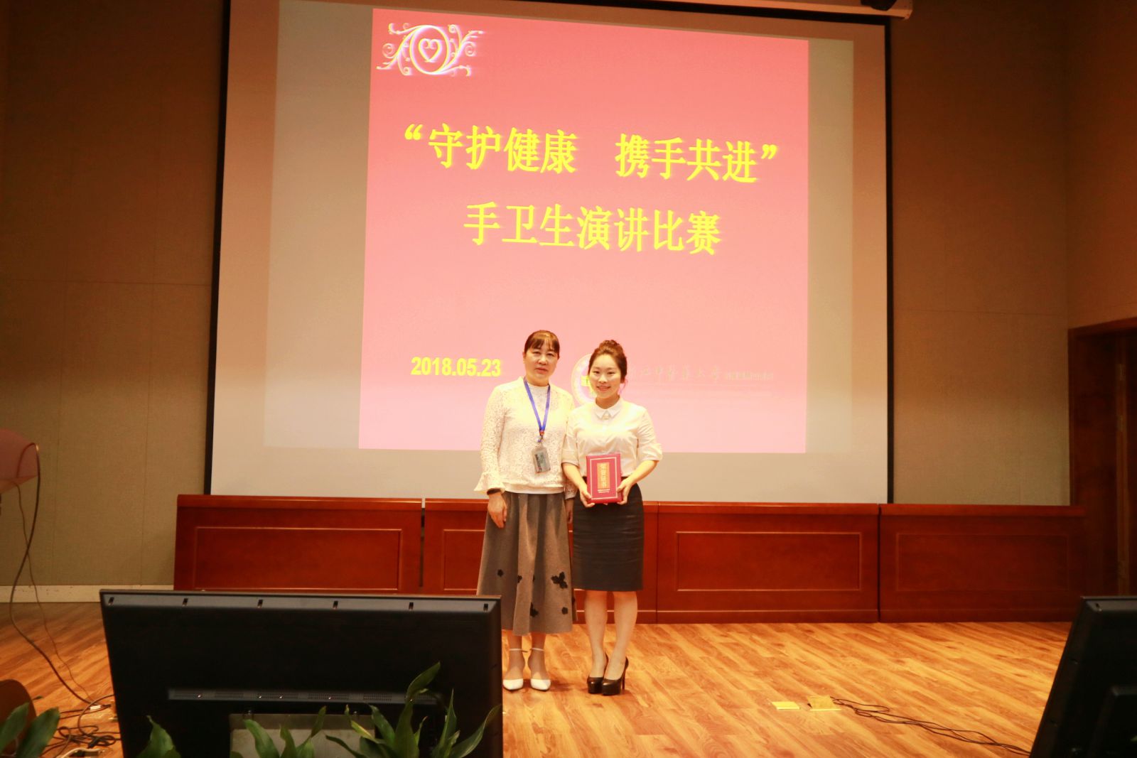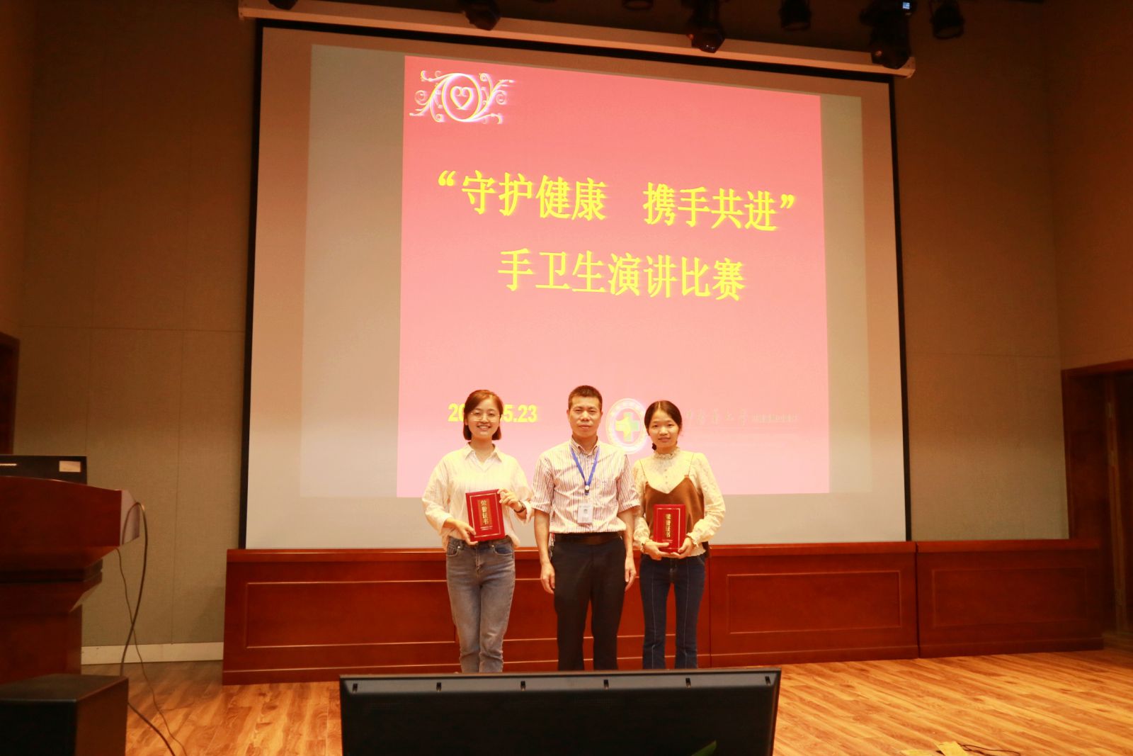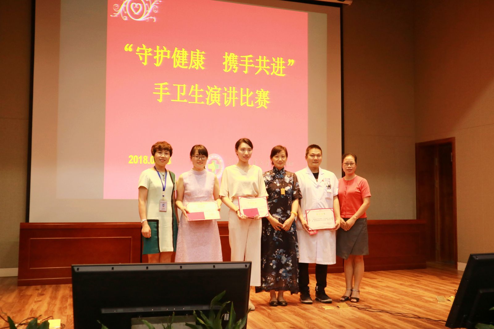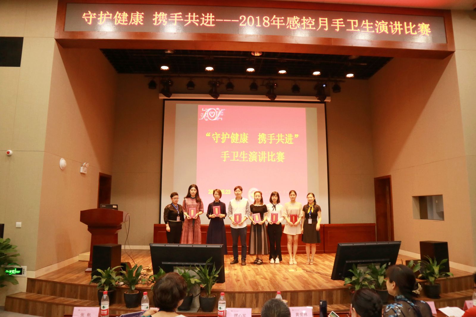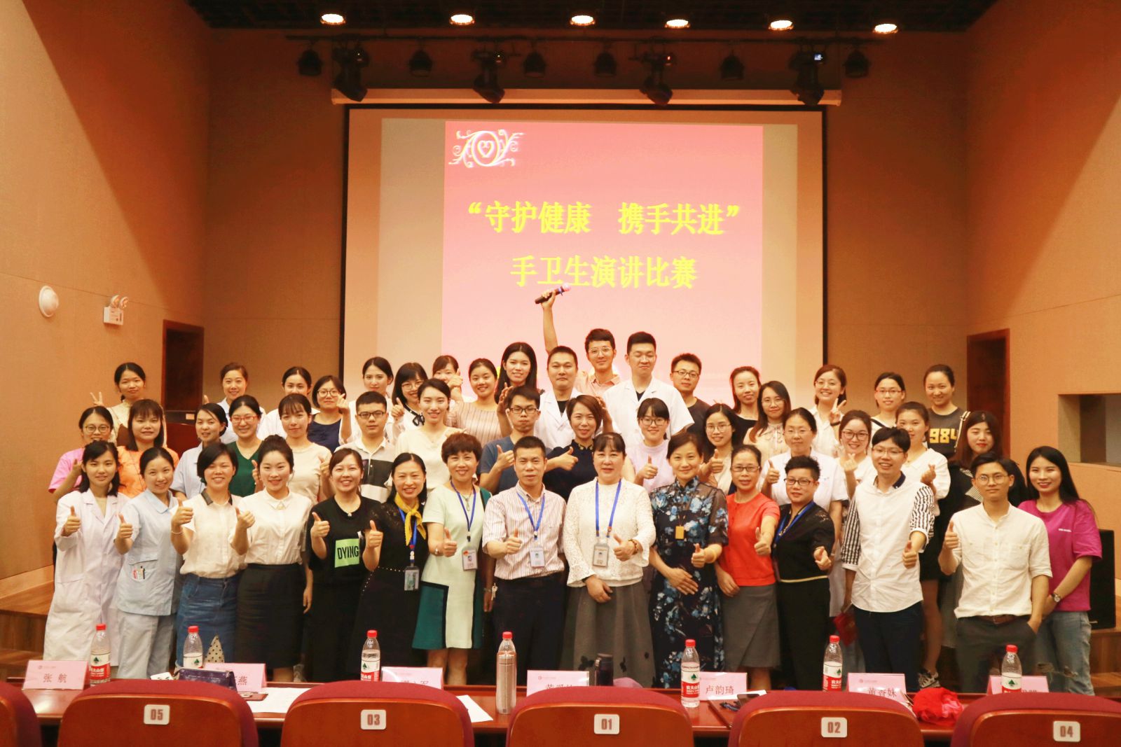 2018年5月23日下午,我院举办感控月系列活动之“守护健康,携手共进”手卫生主题演讲比赛,此次活动得到了各临床科室的积极配合,共28名医护人员代表科室参加了比赛。活动邀请我院党委黄爱林副书记、缪心军副院长、护理部卢韵琦主任、质管科黄香妹主任、院感科徐玉燕科长、张航副科长和张思朦副科长担任评委。