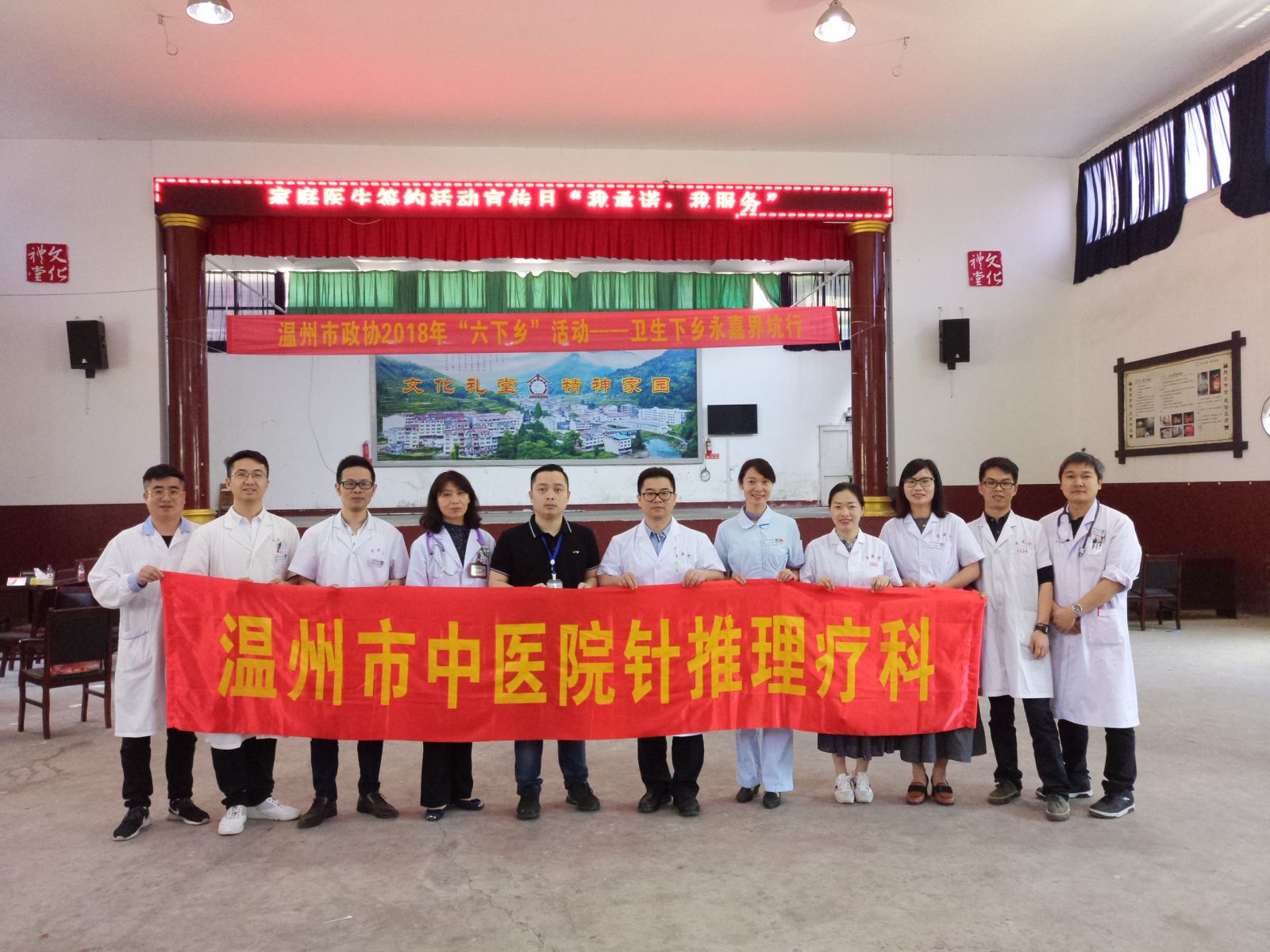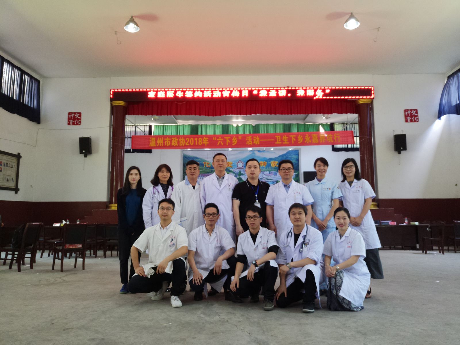 5月4日,卫计委徐斌主任带领市政协医卫界别委员赴永嘉界坑村开展义诊活动。此次下乡活动,市直属多家九州娱乐城 、卫生机构鼎力配合,我院由王庆来院长亲自带队,将中九州娱乐城 优秀的医疗团队和医疗资源送到基层群众中。