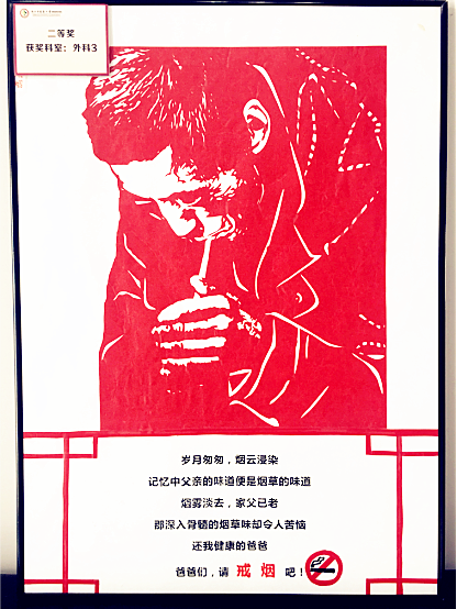为宣传吸烟的危害,我院举办了无烟日创意海报设计大赛。经过一个多月的筹备,比赛于5月13日下午进行了现场评比,在黄爱林副书记、朱文宗副院长等七位评委激烈的讨论后,心血管内科的参赛作品脱颖而出,拔得头筹,外科3、康复科2紧随其后,取得二等奖的好成绩,门诊部、中医妇科1、康复科3的作品也大受好评,荣获三等奖,妇产科、院办等10个科室亦是榜上有名,喜获鼓励奖。其中,心血管内科、门诊部、康复科3还分别斩获最佳创意奖、最佳构图奖、最佳主题奖。