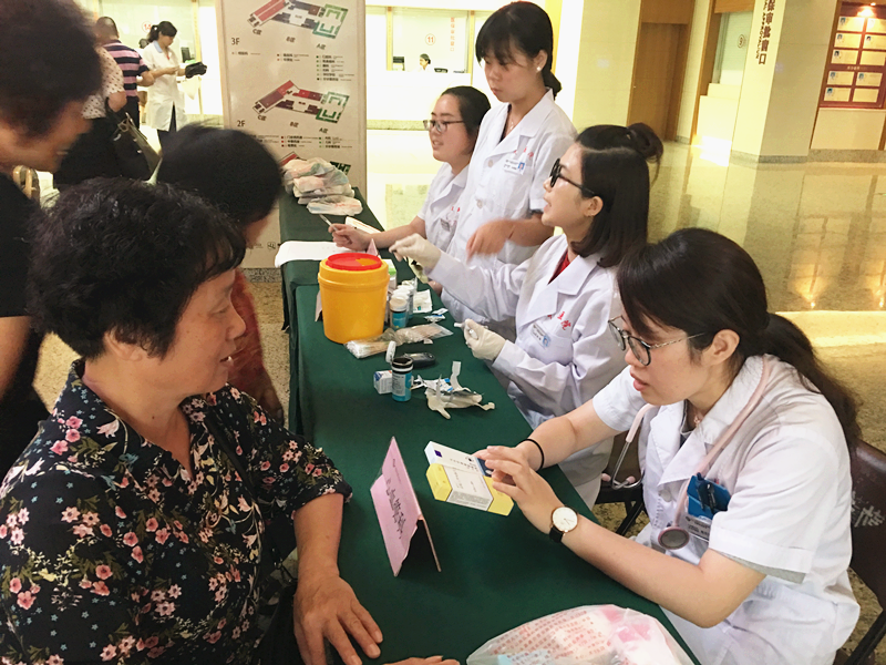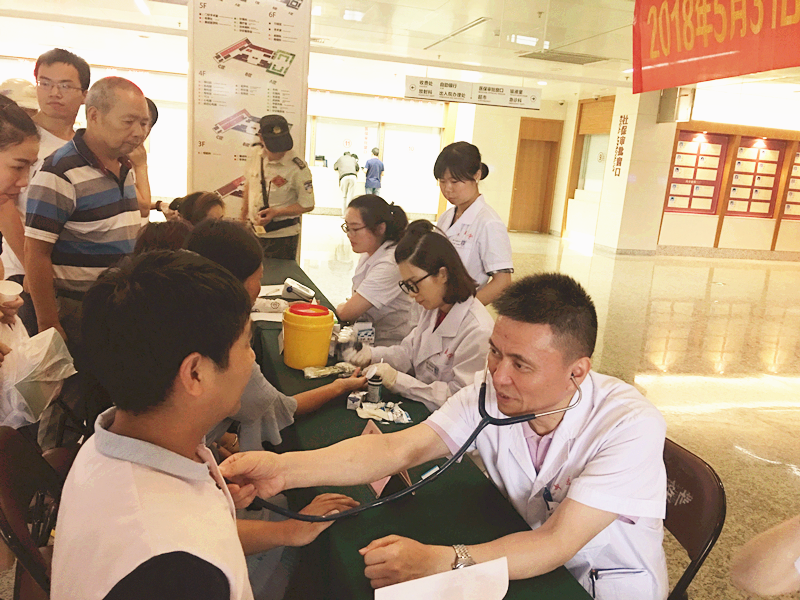 为进一步加深门诊病人对吸烟危害的认识,同时筛查心血管疾病的高危因素高血压与糖尿病,今天上午,我院预防保健科在门诊大厅组织了无烟日义诊活动,为在场群众免费测血压、血糖,并发放宣传资料及小礼品若干。此次活动还邀请呼吸科刘刚主任和心内科蒋芙苓医生为现场患者答疑解惑。