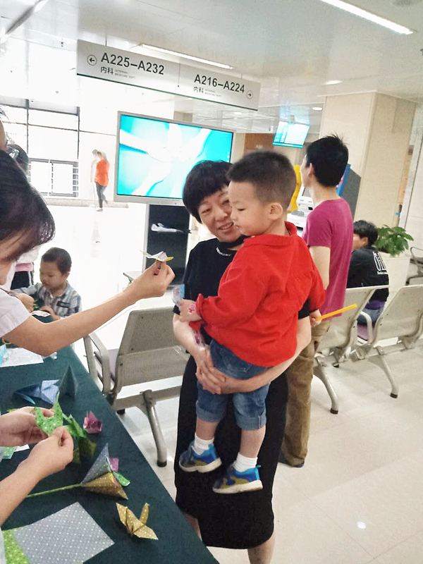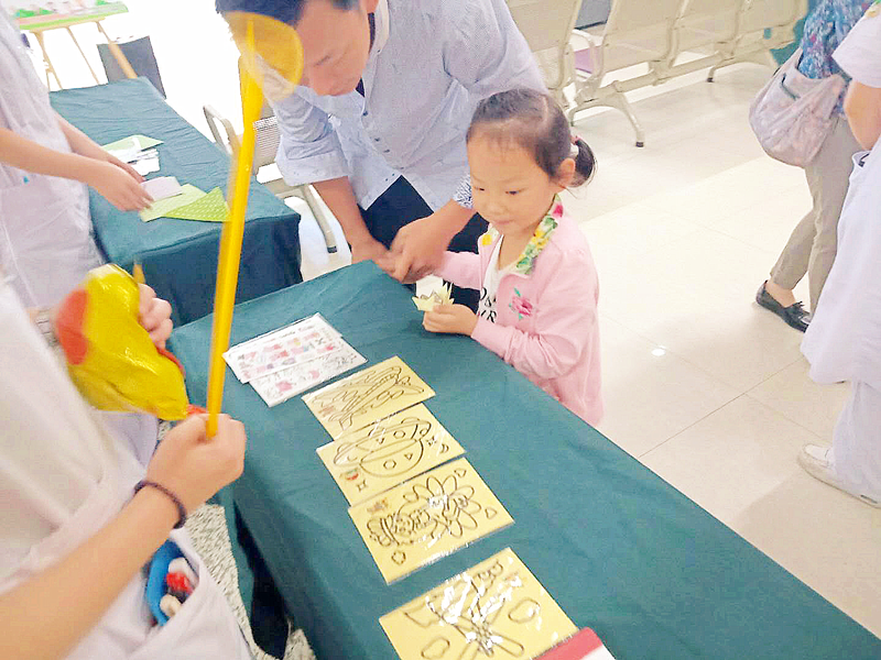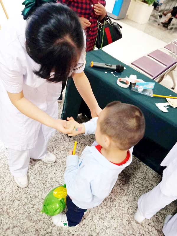 喜迎“6.1”亲子活动在门诊二楼候诊大厅举行。活动现场热闹非凡,处处洋溢着欢乐温馨的气氛:DIY手工制作——卡通手工折纸游戏,看看谁是折纸小高手;体感游戏——观看洗手操视频,学做洗手操,看看谁是洗手小卫士;还有小朋友们喜欢的沙画、最爱的小猪佩奇贴纸、精美的文具礼品等都令小朋友们兴奋不已。活动过程中,门诊工作人员还为小朋友们提供了表现和展示自己的机会,鼓励他们上台表演节目或送上一句祝福。