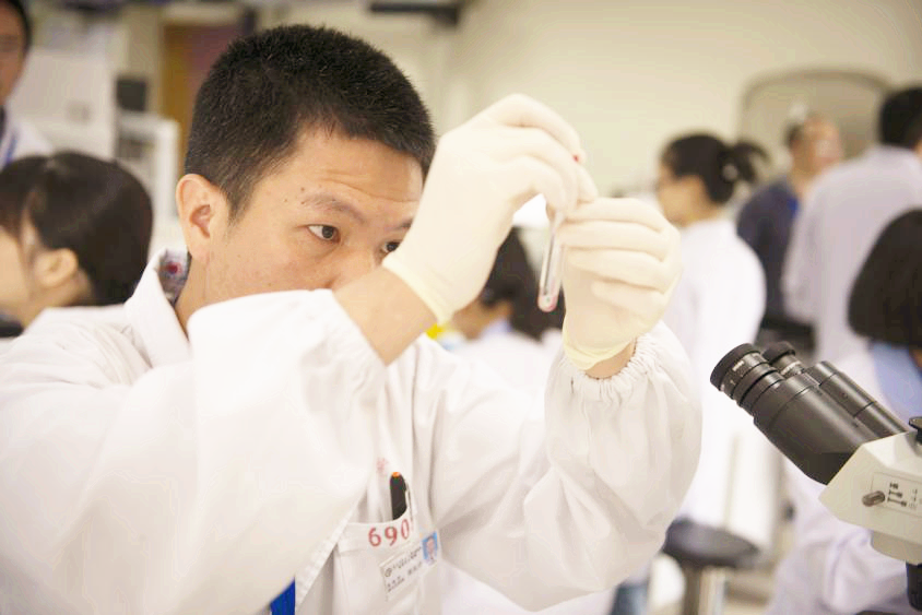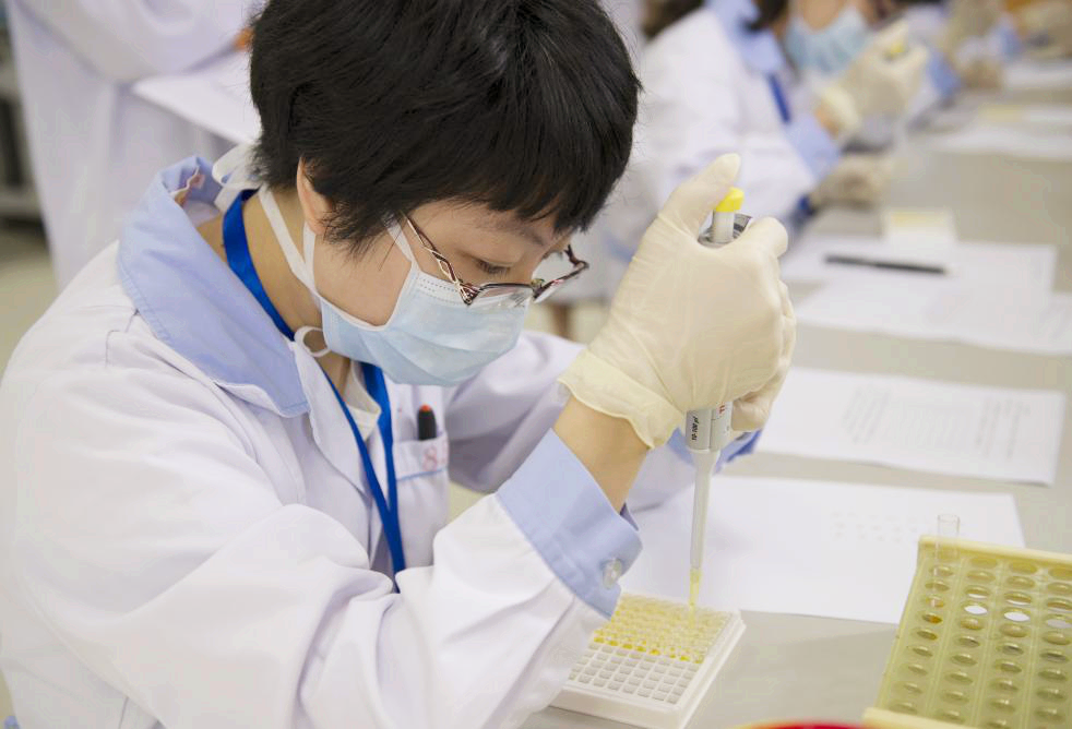 检验在职人员的大力响应,报名人数达百人以上,赛制分为初赛和复赛,比赛于6月29日进行理论初赛(理论考核),其中24位选手依靠自己扎实的理论体系顺利晋级初赛实践阶段,本次竞赛内容包括理论考核、形态学图谱考核、实践技能考核(包括手工血细胞计数:白细胞、血小板,以及手工白细胞分类计数:涂片、染色、分类;划平板及生物安全柜使用操作;移液器使用等),选手们充分发挥自己的主观能动性,认真细致,动作娴熟,井然有序的进行着比赛,在比赛中赛出水平,赛出风采。 (选手认真记录实验结果) (评委严格打分,公开、公平、公正!) (比赛现场) ( 选手在一丝不苟地进行加样考核) 本次赛程现已过半,预祝所有的医学检验精英们在接下来的复赛中取得佳绩!让我们共同为了医学检验的未来而努力!并预祝本次竞赛取得圆满成功! (选手在进行细胞计数环节)