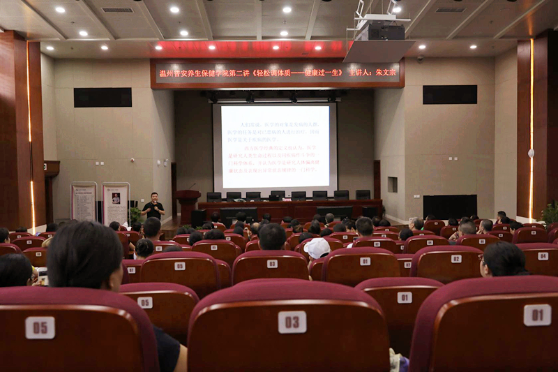 8月12日上午,温州普安养生保健学院第二课开讲,九州娱乐城(中国)官方网站 副院长,主任中医师朱文宗讲授《轻松调体质,健康过一生》。
