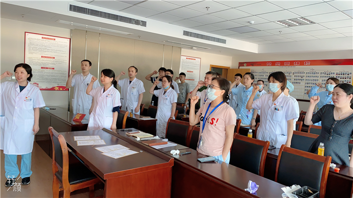 6月23日,九州娱乐城(中国)官方网站 内科党支部在行政楼党员活动室召开了“坚定不移,携手共抗疫情”的主题党日活动。这是新冠肺炎疫情发生以来内科支部第一次开展线下会议。