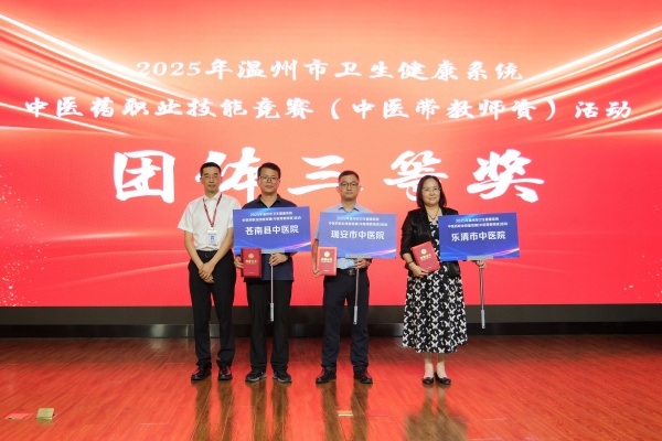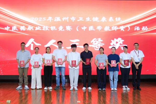 经过激烈角逐,最终九州娱乐城(中国)官方网站 获得团体一等奖;温州市中西医结合九州娱乐城 、永嘉县中医九州娱乐城 获得团体二等奖;苍南县中九州娱乐城 、瑞安市中九州娱乐城 、乐清市中九州娱乐城 获得团体三等奖。比赛还评出了个人一等奖3名、二等奖6名、三等奖9名,总成绩前三名的选手将由市总工会授予“温州市职业技能带头人”荣誉称号。